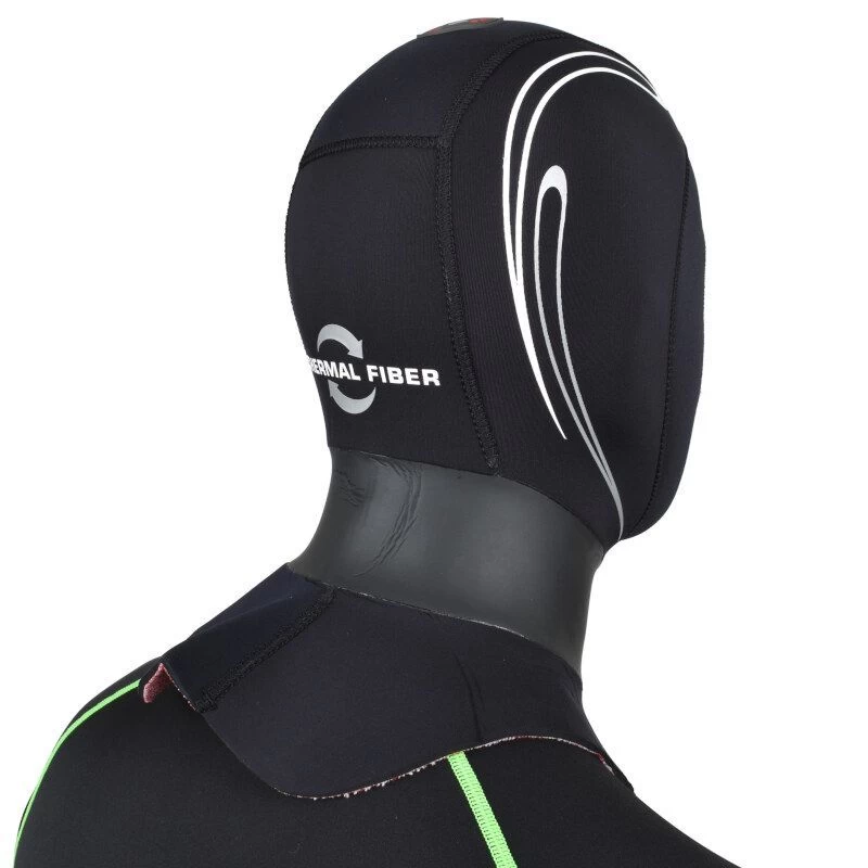 Néoprène super élastique 5 mm Ultraflex/fibre thermique. Extérieur lisse au niveau du cou, pour garantir une meilleure adhérence à la combinaison. La soupape « Air Release » permet d’évacuer l’air.