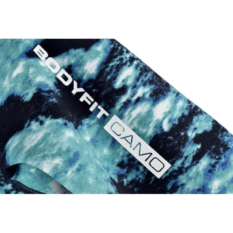 La doublure camouflée vert-bleu est renforcée avec des inserts en PU Tatex sur les genoux et présente un support sternal en Melco.