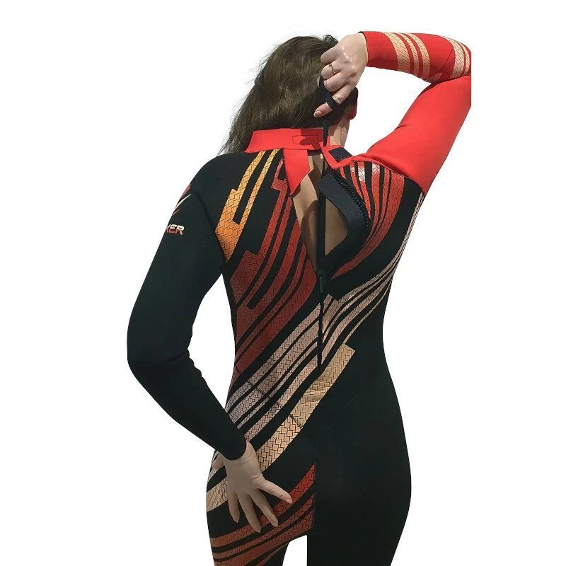 – Revêtement intérieur élasthanne pour les parties des épaules, des bras, de l’entre-jambe, des dessous de bras et de l’articulation des genoux avec un néoprène moins épais pour un maximum de stretch et de confort dans les mouvements