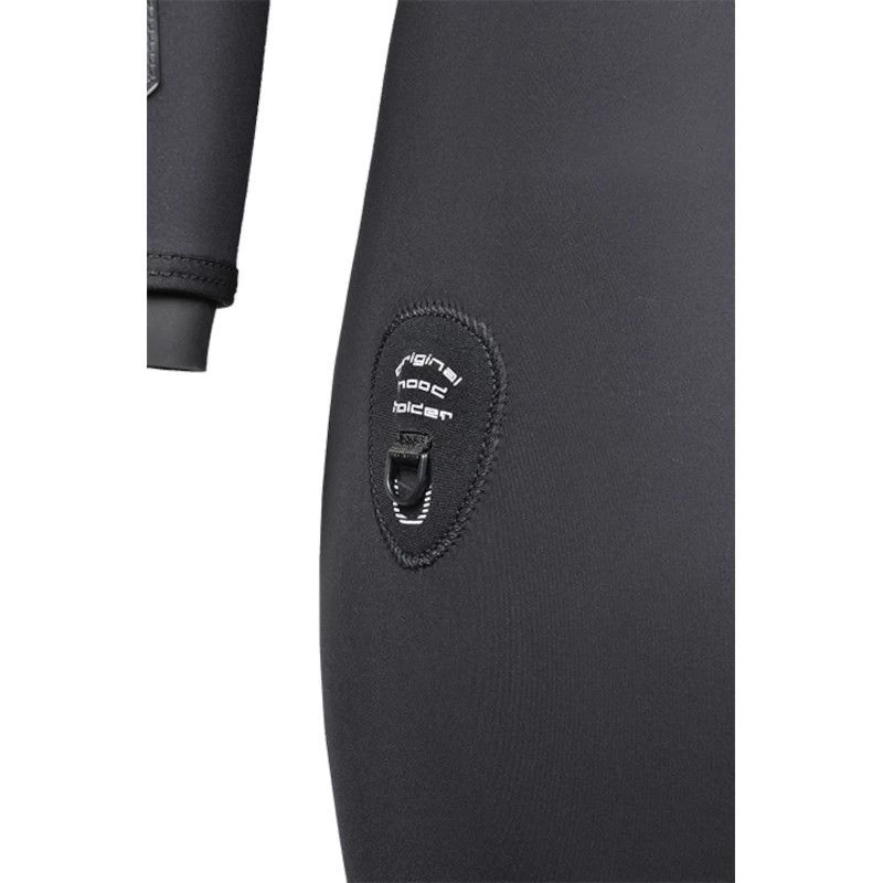 Manchon visage aminci (-2 mm) sur la monopièce col avec une zone autour du visage sans couture pour plus de confort, d’étanchéité et de durabilité. Col lisse intérieur pour plus d’étanchéité et fermeture finement ajustable grâce à un scratch élastique et un grip non agressif qui ne s’agrippe pas sur le jersey et les coutures. Double manchon poignet et cheville zippé avec manchon intérieur à retourner, en jersey intérieur et néoprène lisse extérieur. L’extrémité de la couture d’assemblage des manchons intérieurs est coupée à 45° pour plus d’élasticité et de solidité lors de l’habillage.