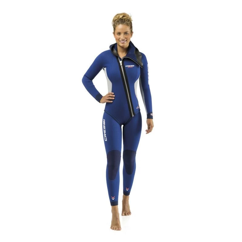 La coupe de ce modèle est dérivée des modèles d’apnée Cressi les plus sophistiqués, elle est donc très anatomique avec bras et jambes préformés pour une position toujours naturelle, et sans couture dans la zone des aisselles.