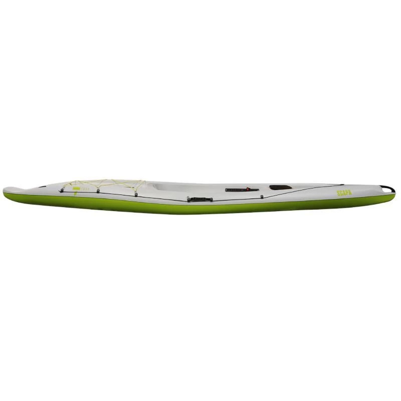 Le Scapa FIT est monté avec des cales pieds rapportés et réglables pour un meilleur confort de pagaie. Il est également équipé en série avec une trappe avant de diamètre 20 cm et d’un large pad qui recouvre la partie arrière de chargement. Le Scapa mesure plus de 3,50 m et peut donc naviguer jusqu’à 2 milles d’un abri sans immatriculation et jusqu’à 6 milles d’un abri avec immatriculation, conformément à la réglementation de la Division 245.