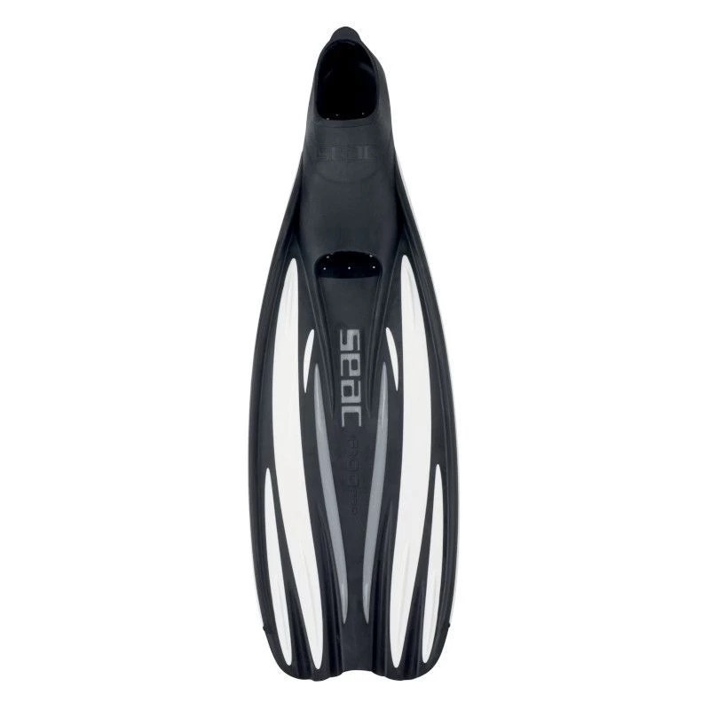 a palme Seac F 100 PRO est conçue pour un usage récréatif mais elle présente aussi beaucoup de caractéristiques des palmes professionnelles : chausson anatomique en caoutchouc thermoplastique qui maintient la palme bien ferme à chaque mouvement, Semelle de la chaussure avec inserts en caoutchouc antidérapants.