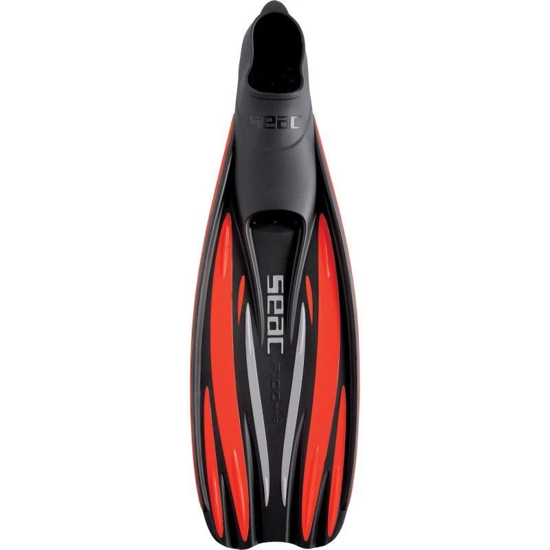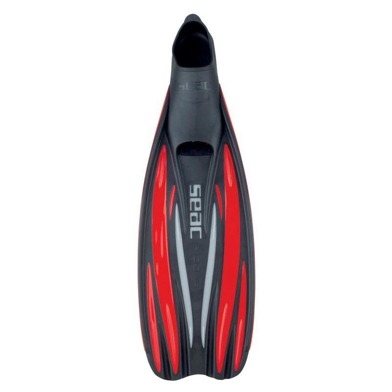 a palme Seac F 100 PRO est conçue pour un usage récréatif mais elle présente aussi beaucoup de caractéristiques des palmes professionnelles : chausson anatomique en caoutchouc thermoplastique qui maintient la palme bien ferme à chaque mouvement, Semelle de la chaussure avec inserts en caoutchouc antidérapants.