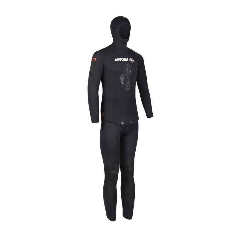 Combinaison de chasse sous-marine au patronage exclusif Beuchat. Sa coupe anatomique et préformée au niveau des coudes et des genoux rend la combinaison confortable. Elle est facile à enfiler grâce au jersey intérieur.