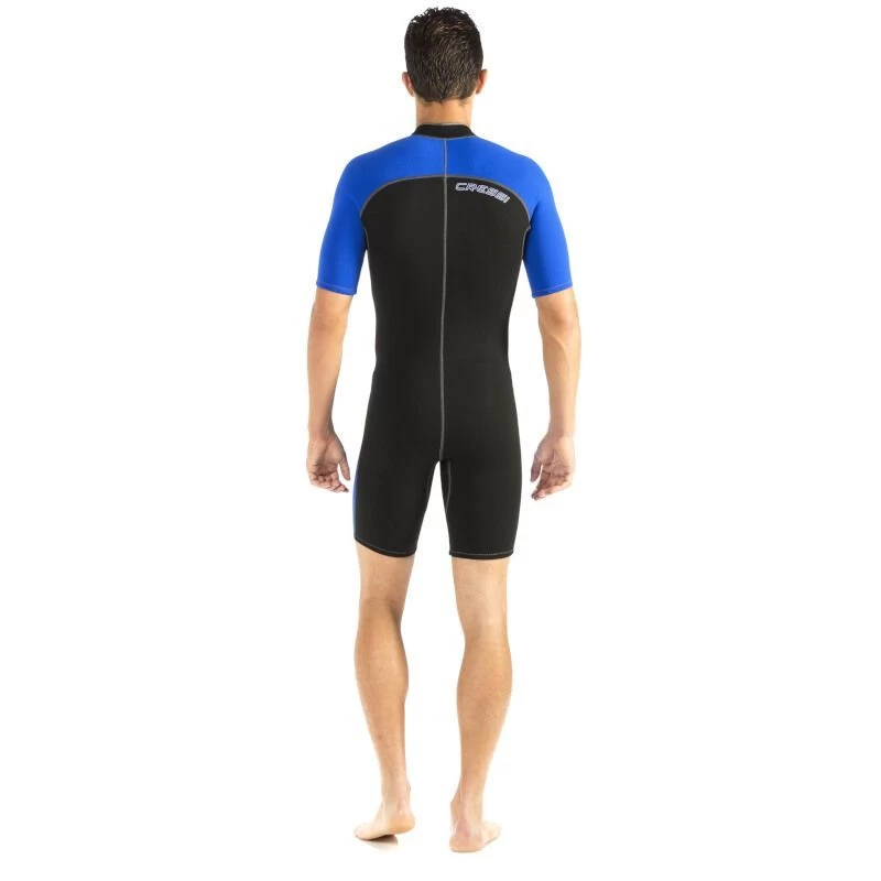 Monopièce sans capuche, avec manches et jambes courtes, réalisée en néoprène doublé deux faces de 2 mm.