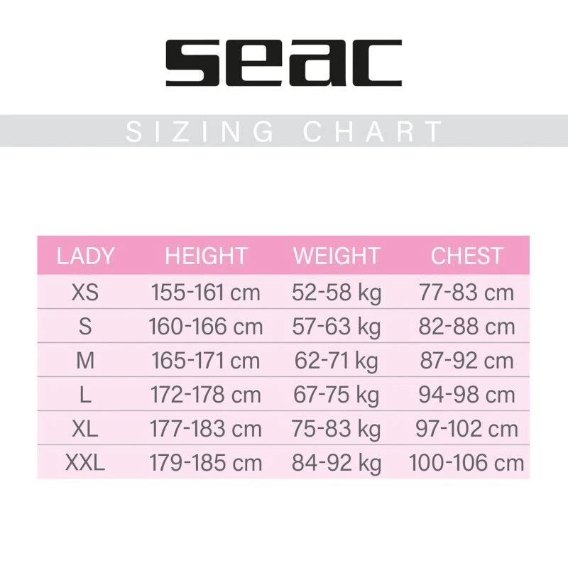 - Seac Shorty Relax est disponible dans différentes tailles pour homme et les femme. Ceux qui recherchent une combinaison plus couvrante peuvent opter pour Seac Relax Long, avec des manches et des jambes longues, toujours disponible pour femme et pour homme.